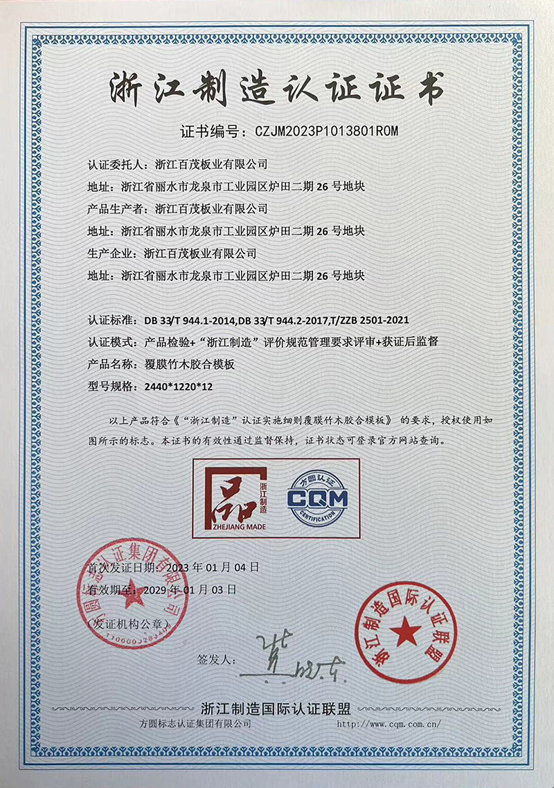 Zhejiang Manufacturing Certificate